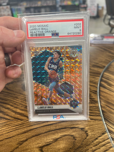 2020 PANINI MOSAIC #202 LAMELO BALL ROOKIE REACTIVE ORANGE - PSA 9