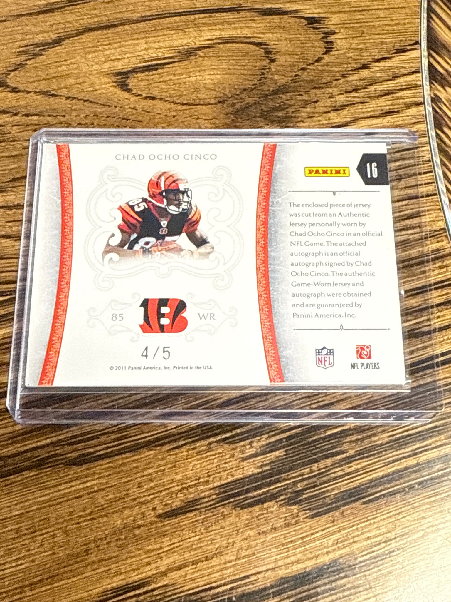 Chad Ochocinco 2011 National Treasures Auto Jersey Game Worn Serial Numbered 4/5